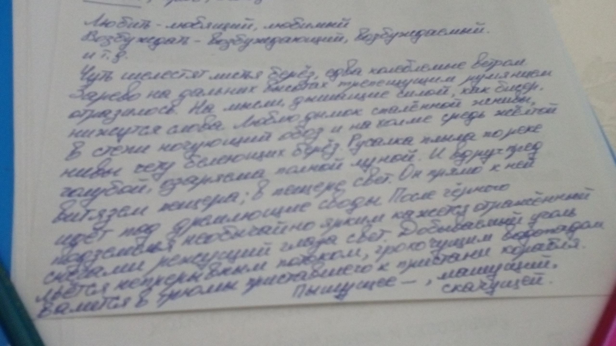 Может, получится прочитать? Последние предложения не писала, там запятых нет, а слова с пропущенными буквами записала.