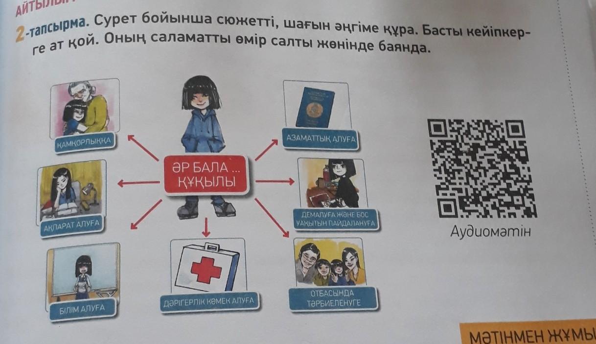 Ответ:Бұл-Айжан. Ол саламатты өмір салтын ұстанады. Себебі: əр бала азаматтық алуға,демалуға жəне бос уақытын пайдалануға, отбасында тəрбиеленуге, дəрігерлік көмек алуға, білім алуға, ақпарат алуға, қомқорлыққа құқылы.