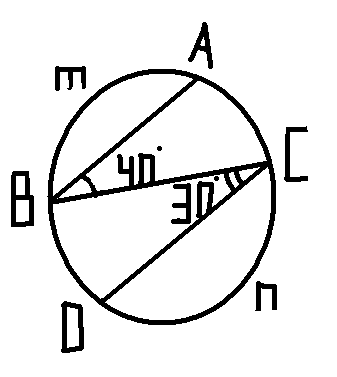 за даними рисунка найдите градусную меру дуги AmB, если градусная мера дуги CnD= 100 градусов