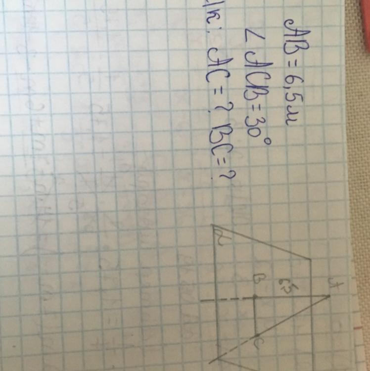 да . смотри там у тебя угол ровно 90° а все углы треугольника равны 180° . 90+30=120° . 180-120= 60° . это все твои углы . а мы знаем что если прямоугольный треугольник один угол равен 30° и мы знаем сторону которая перед 30° то мы запроса можем найти сторону на каторгой опирается 30° .