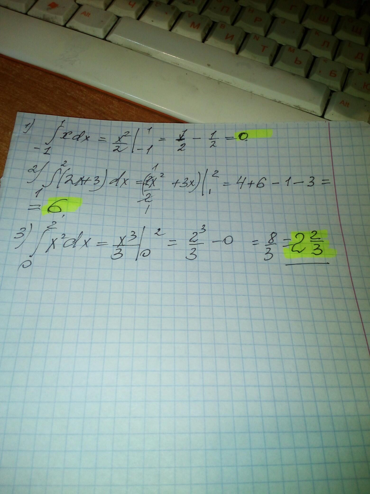 3. =х³/3|от 0 до 2|=(8/3)-(0)=2 2/3