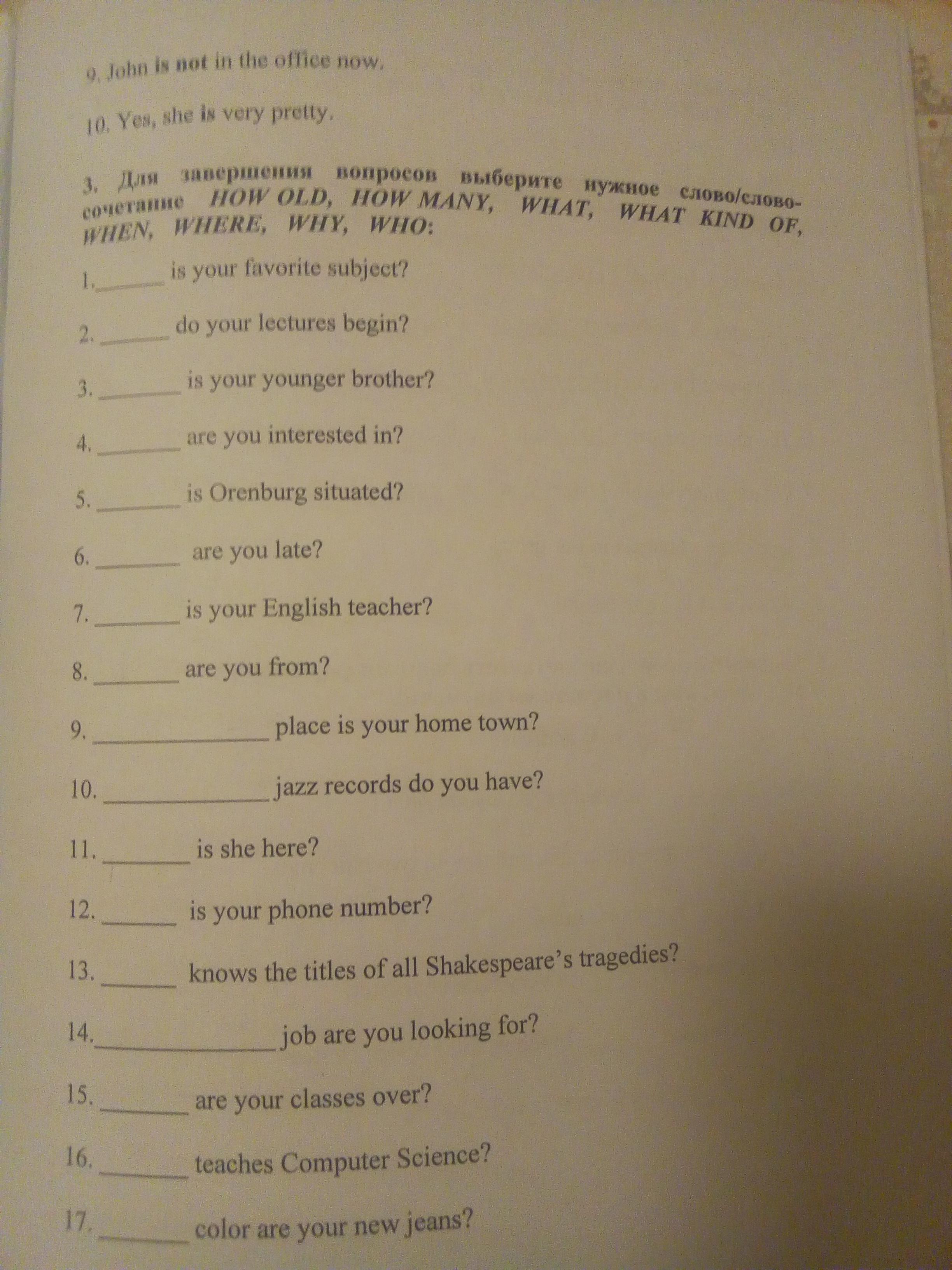 3) 1. what 2. when 3. how old 4. what 5. where 6. why 7. who 8. where 9. what kind of 10. how many 11. why 12. what 13. who 14. what kind of 15. when 16. who 17. what