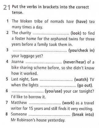 1.having 2.looked 3.you 4.hear 5.watching , going out 6.use 7.working 8.breakes into