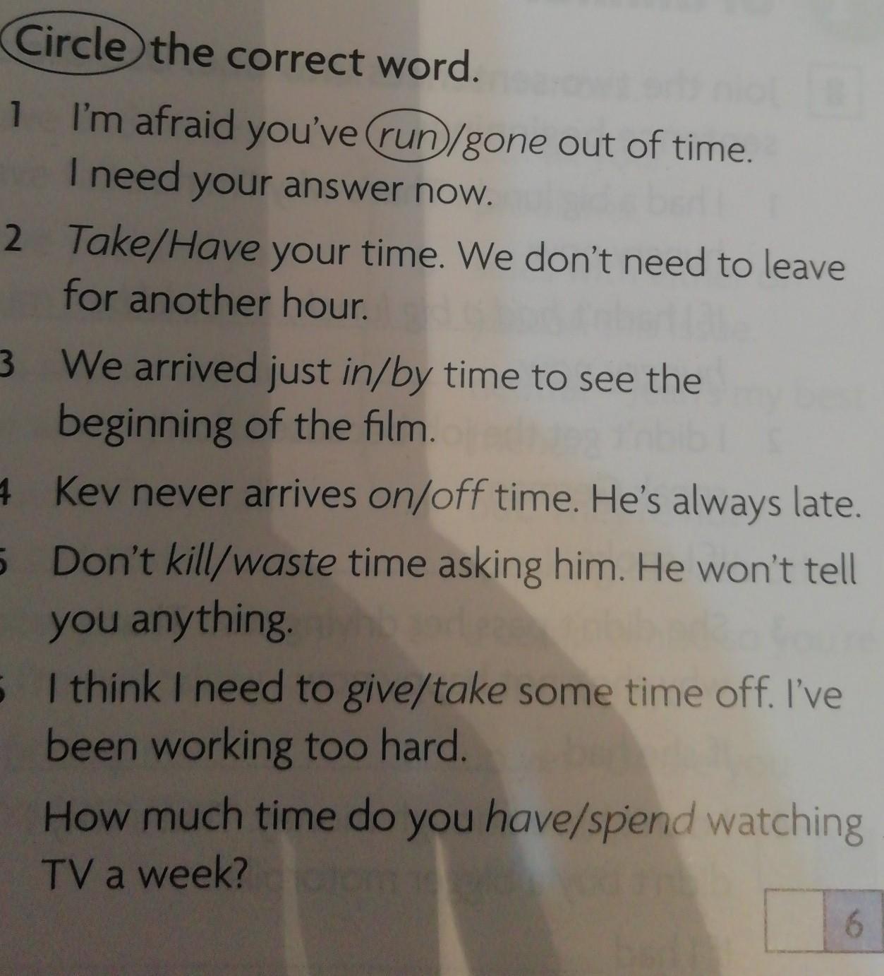 2 take 3 in 4 on 5 waste 6 take 7 spend