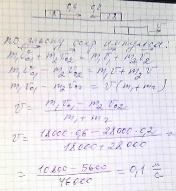 Две железнодорожные платыформы движутся навстречу друг другу со скоростями 0,6 и 0,2 м/с Массы платформ соответственно равны 18т и 28 т с какой скоростью и в каком направлении будут двигаться платформы после столкновения удар считать неупругим