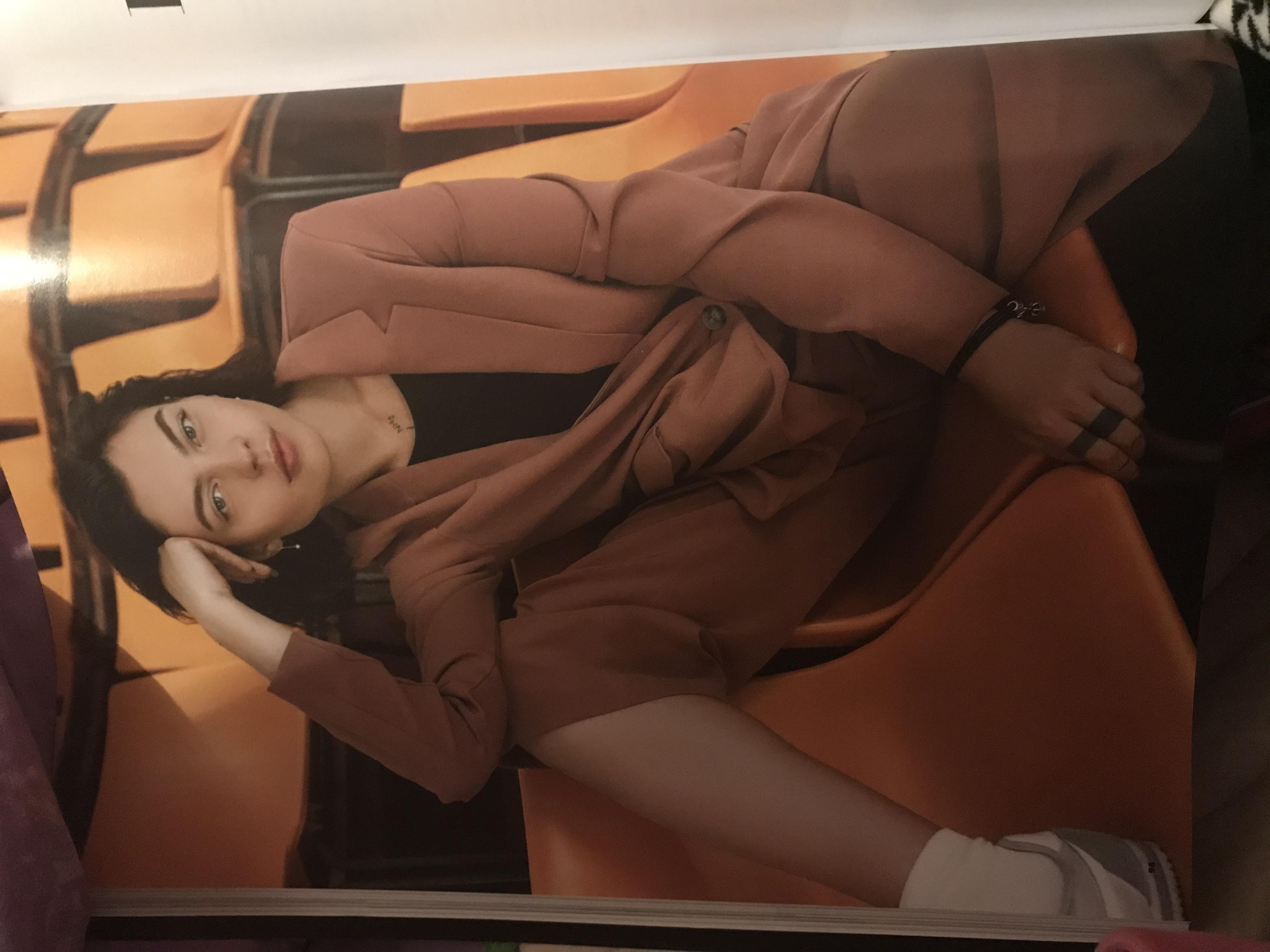 In this picture I can see a girl.I think she is 18 years old.She is rather pretty.She has got long dark hair.Her ear-rings are so beautiful.She is dark-brown-eyed girl with pretty nose and rosy cheeks.She is wearing a very nice brown trousers suit.