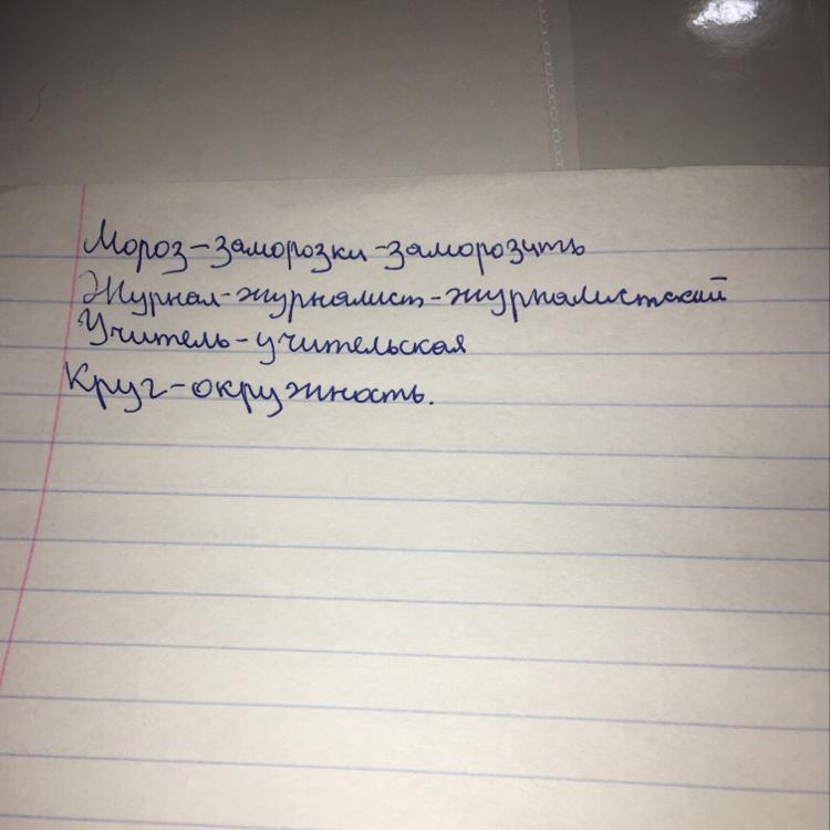 Словообразовательная цепь слов:заморозиться,журналистский,окружность.