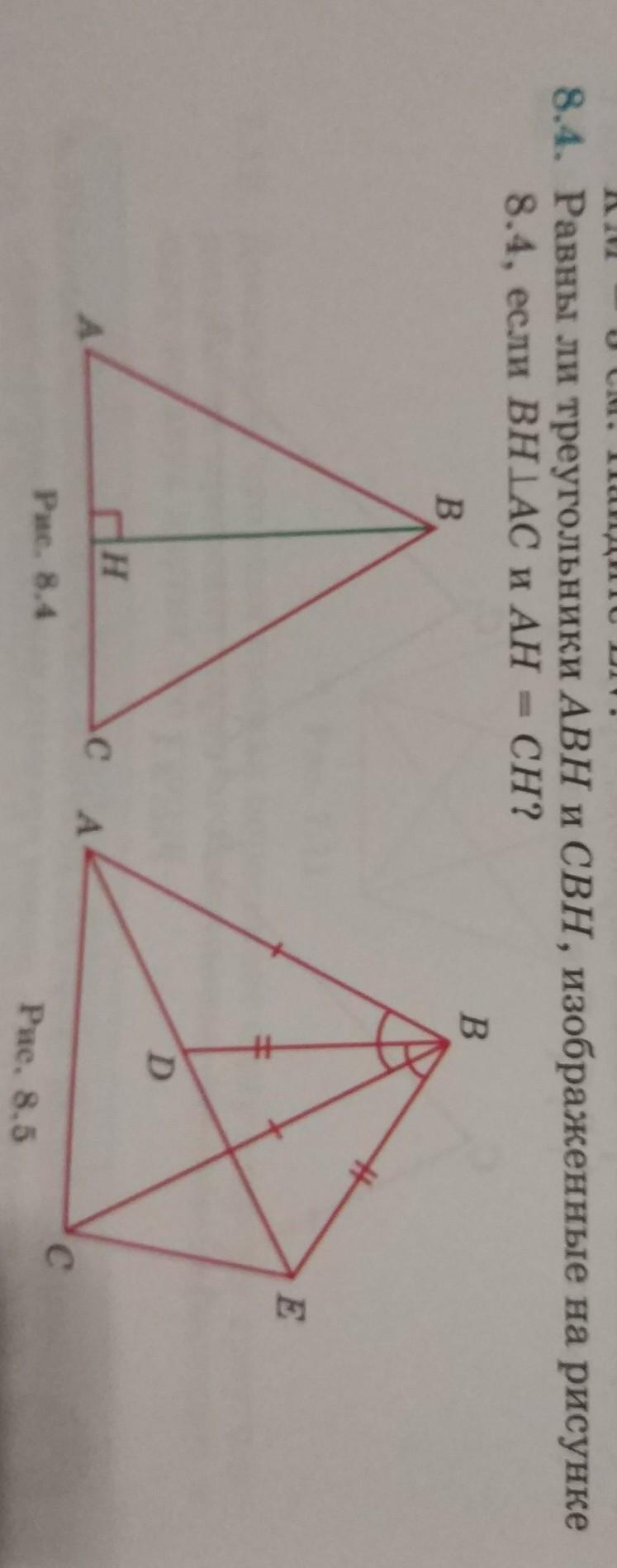 Так как в данном случае высота ВН является медианой(АН=НС), то треугольник АВС- равнобедренный, следовательно АВ=ВС(как боковые стороны), АН=НС(по условию), угол ВНА=ВНС=90°, следовательно треугольники АВН и ВНС равны по катету и гипотенузе