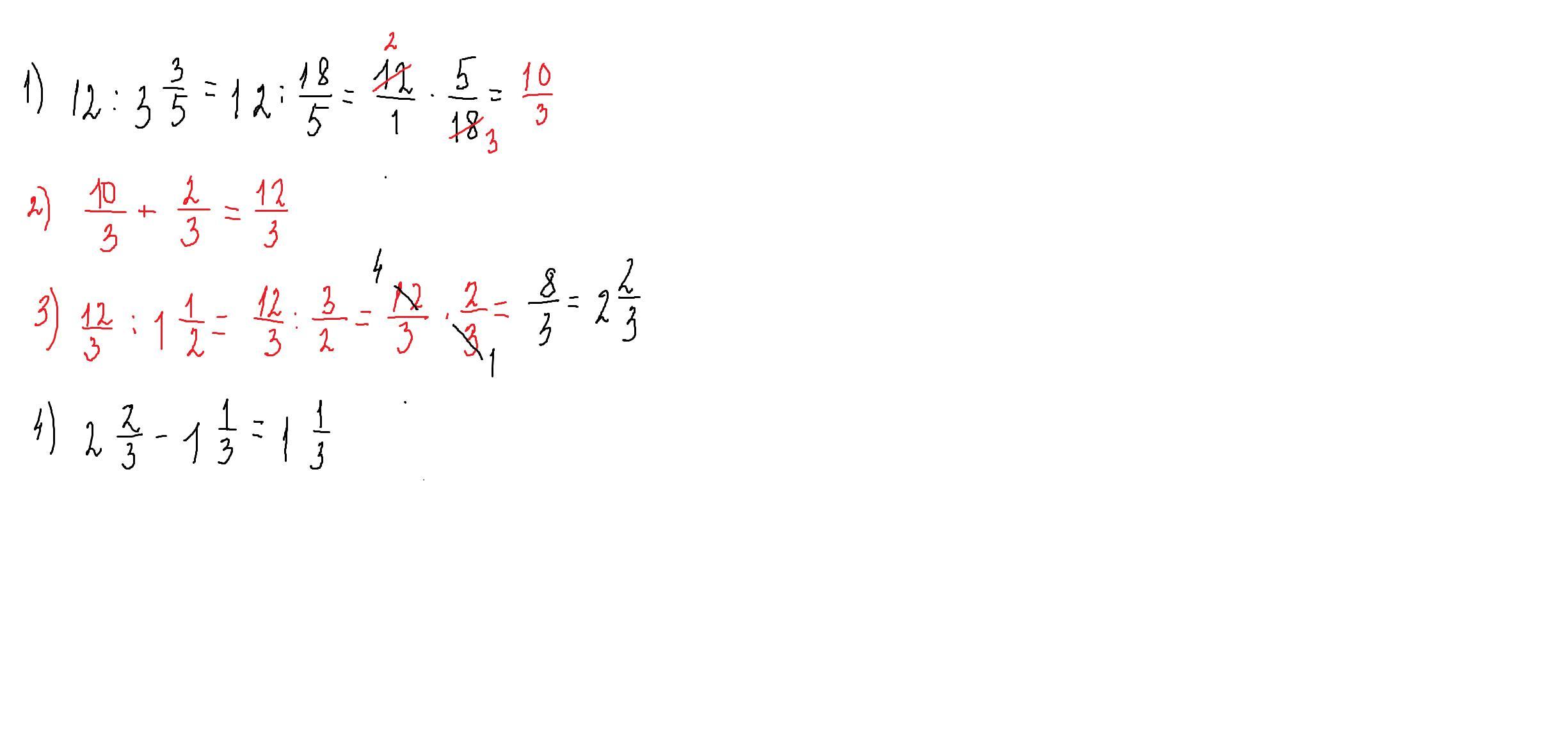 (12:3 3\5+ 2\3 ):1 1\2 -1 1\3= 1 1\3