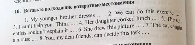 1 himself 2 ourselves 3 yourself 4 herself 5 themselves 6 herself 7 itself 8 themselves