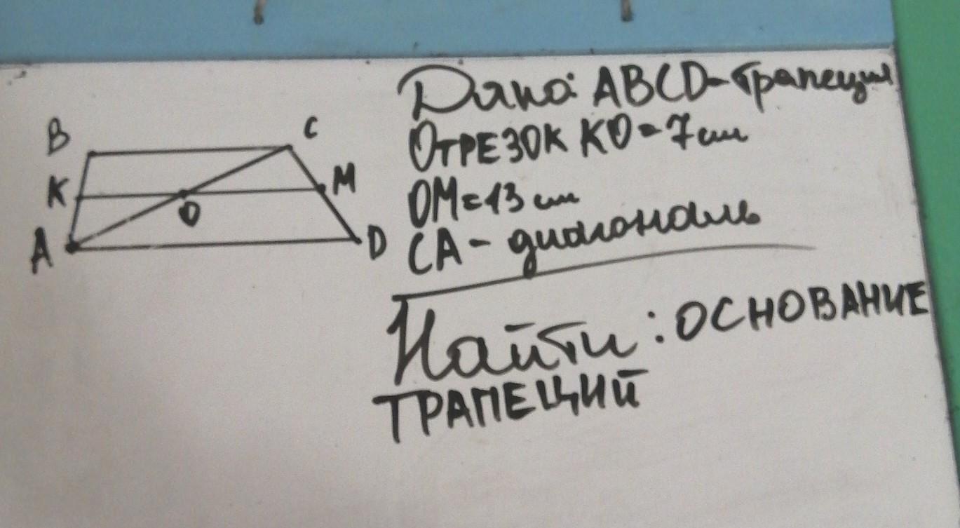 3)Т.к. СМ=МД и ОМ║АД, то по т. Фалеса , АО=ОС. Значит МО-средняя линия ΔАДС. По т. о средней линии треугольника МО=1/2*АД ,13=0,5*АД ,АД=26.