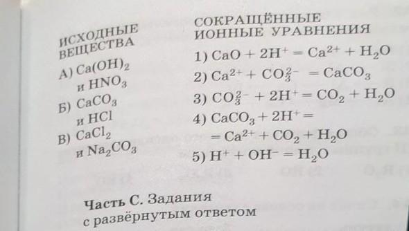Установите соответствие между исходными веществами и сокращенным ионными уравнениями реакции между ними
