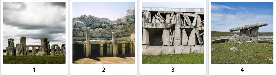 На этих картинках вы видите три мегалита и одну постройку — их современную версию. Найдите ее.