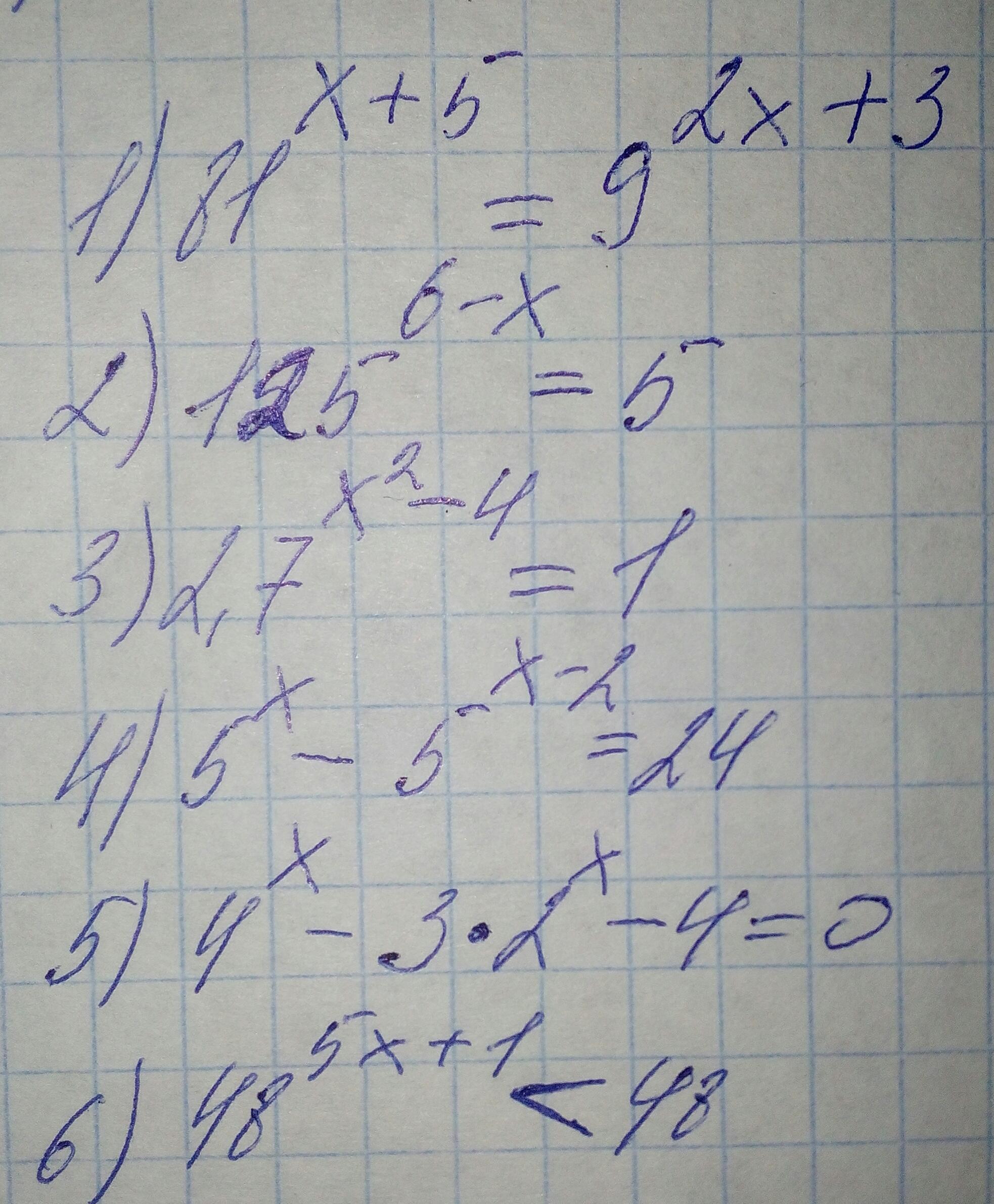 4) 5^x - 5^x-2 =24