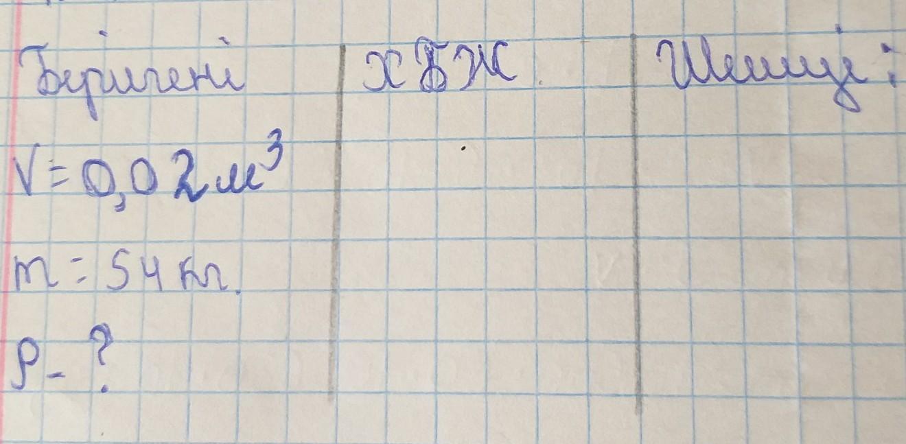 Объяснение:формула Р v/m. Системе си переводишь 2м3