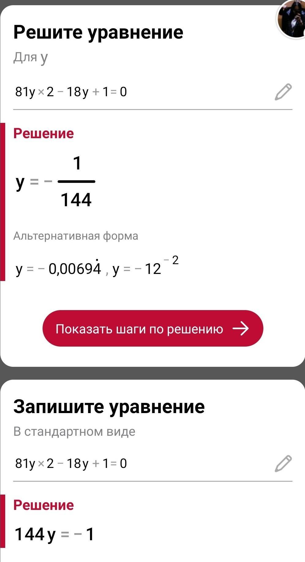 D = b² - 4ac = 324 - 4 × 81 = 324 - 324 = 0 - имеет один корень.