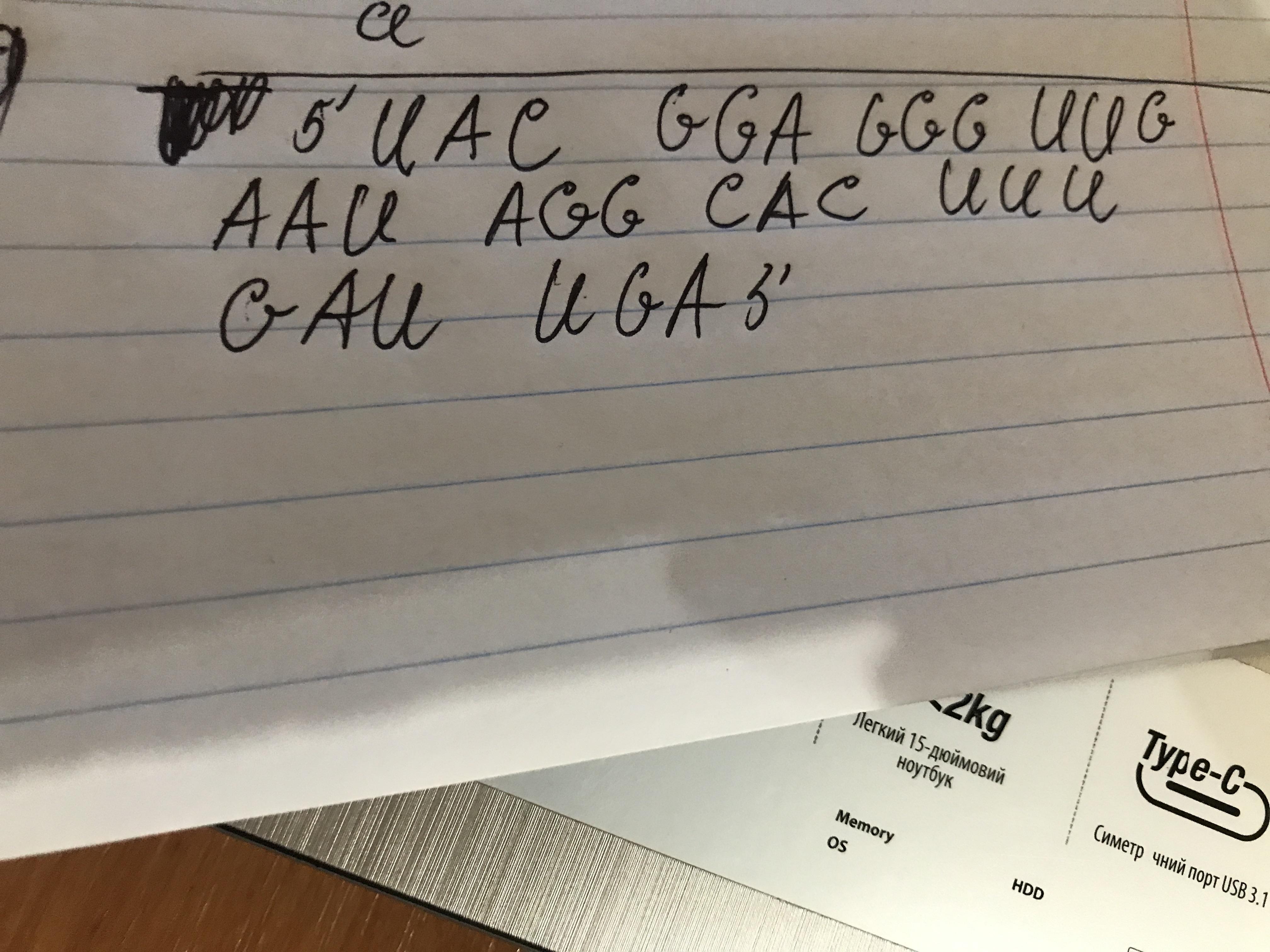 Какую последовательность аминокислот кодирует следующая последовательность нуклеотидов в мРНК? 5'-AUG СCU ССС АAC UUА UCC GUG AAA CUA AСU-3'