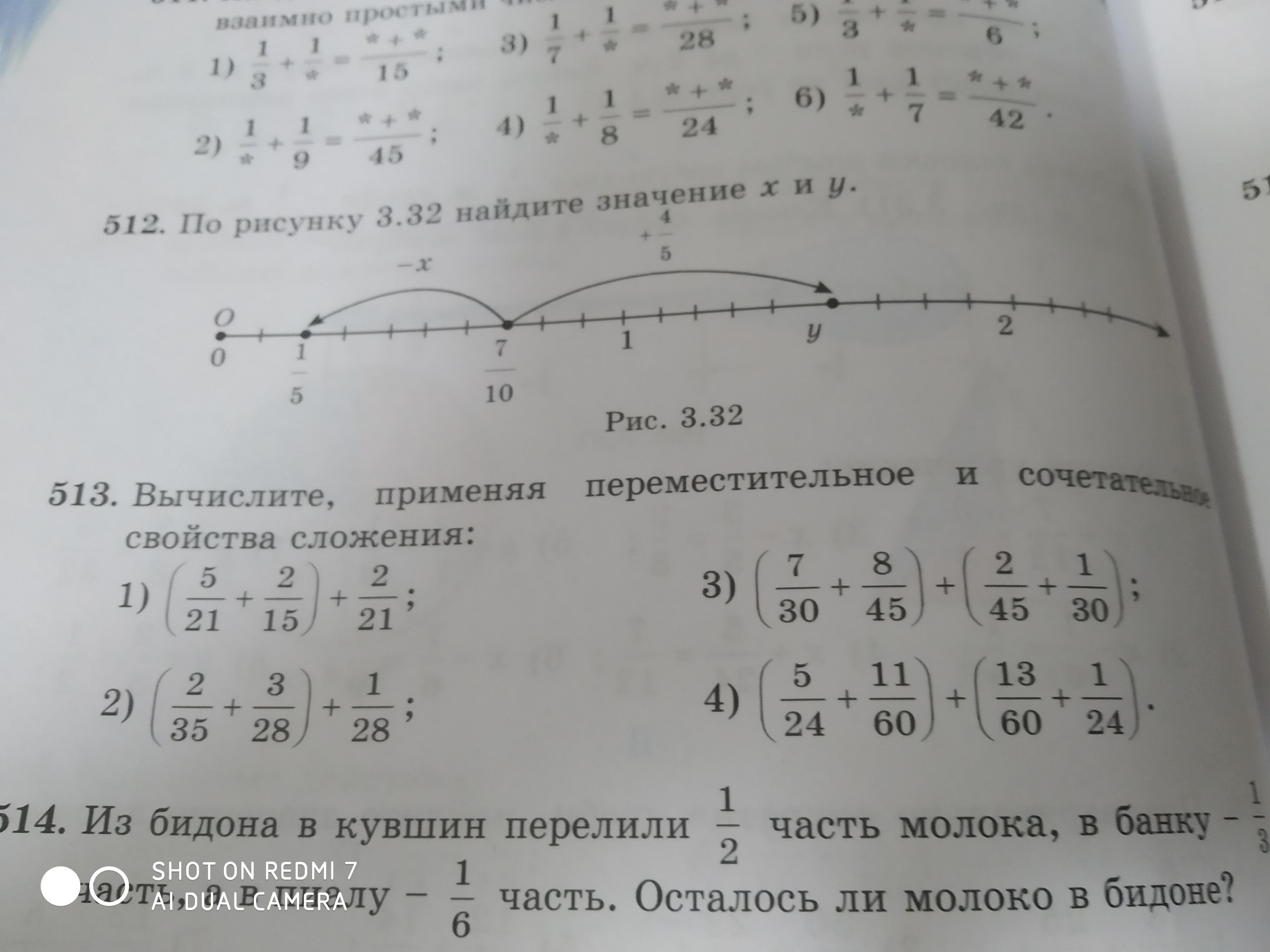 Номер 513 вычислите, применяя переместительное и сочетательное свойства сложения (плиз решите в тетради и сфотайте )