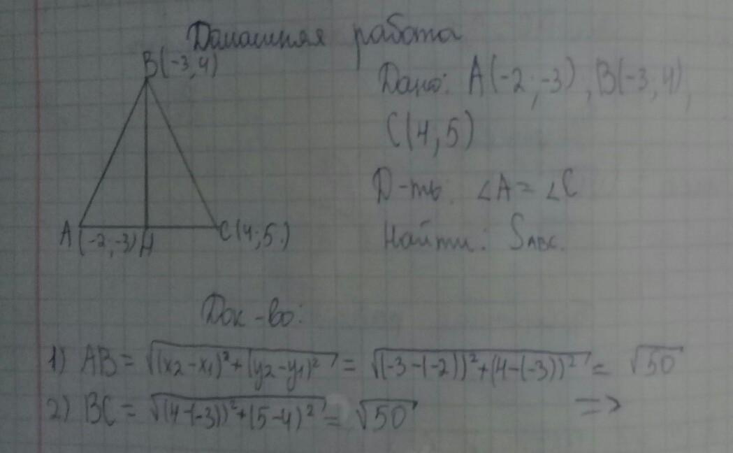 Дано : А (-2;-3) ; В (-3;4) ; С (4;5)