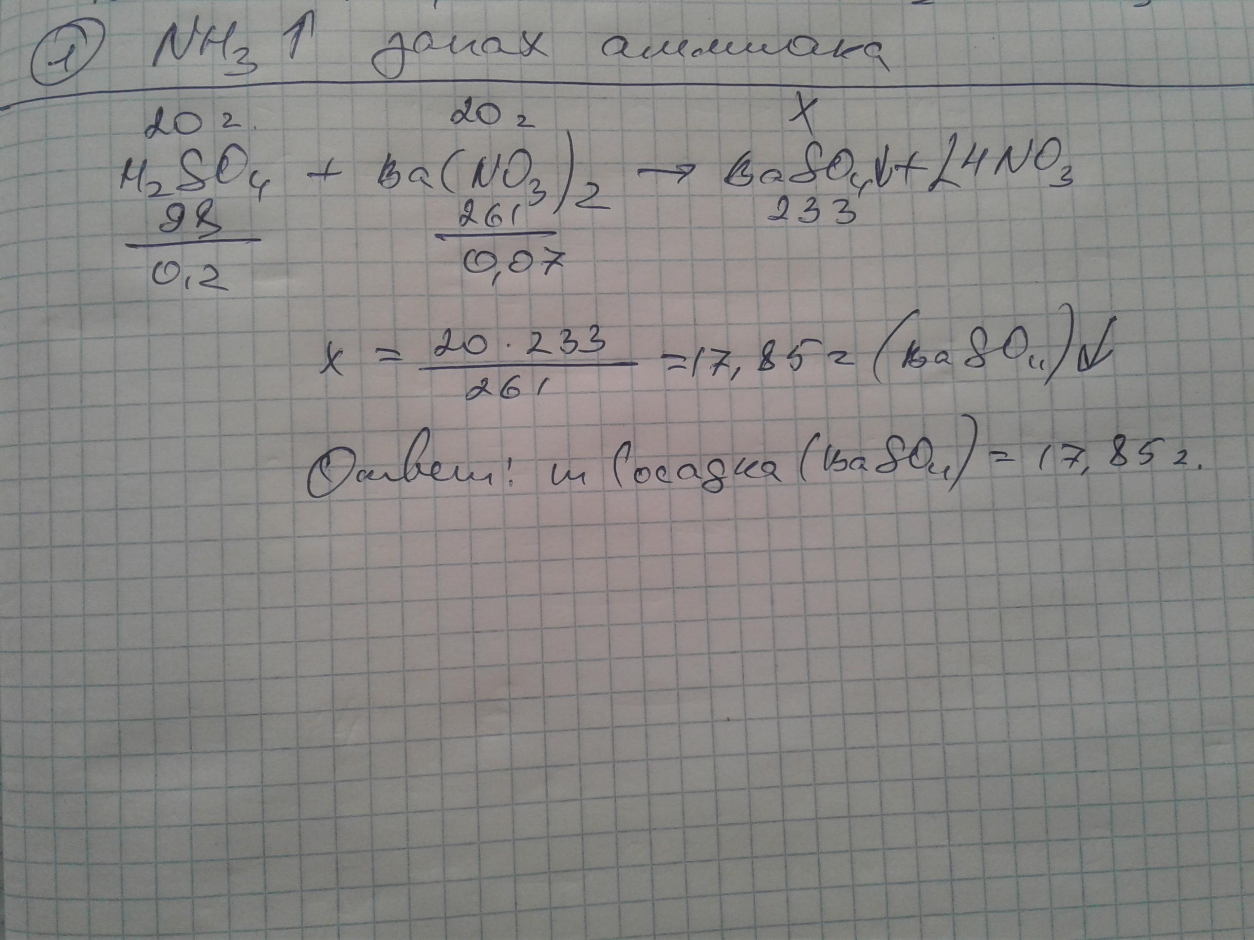 К раствору, содержащему 20 г серной кислоты, прилили раствор, содержащий 20 г нитрата бария. Рассчитайте массу образовавшегося осадка. СРОЧНО ПОМОГИТЕ ПОЖАЛУЙСТА!!!!
