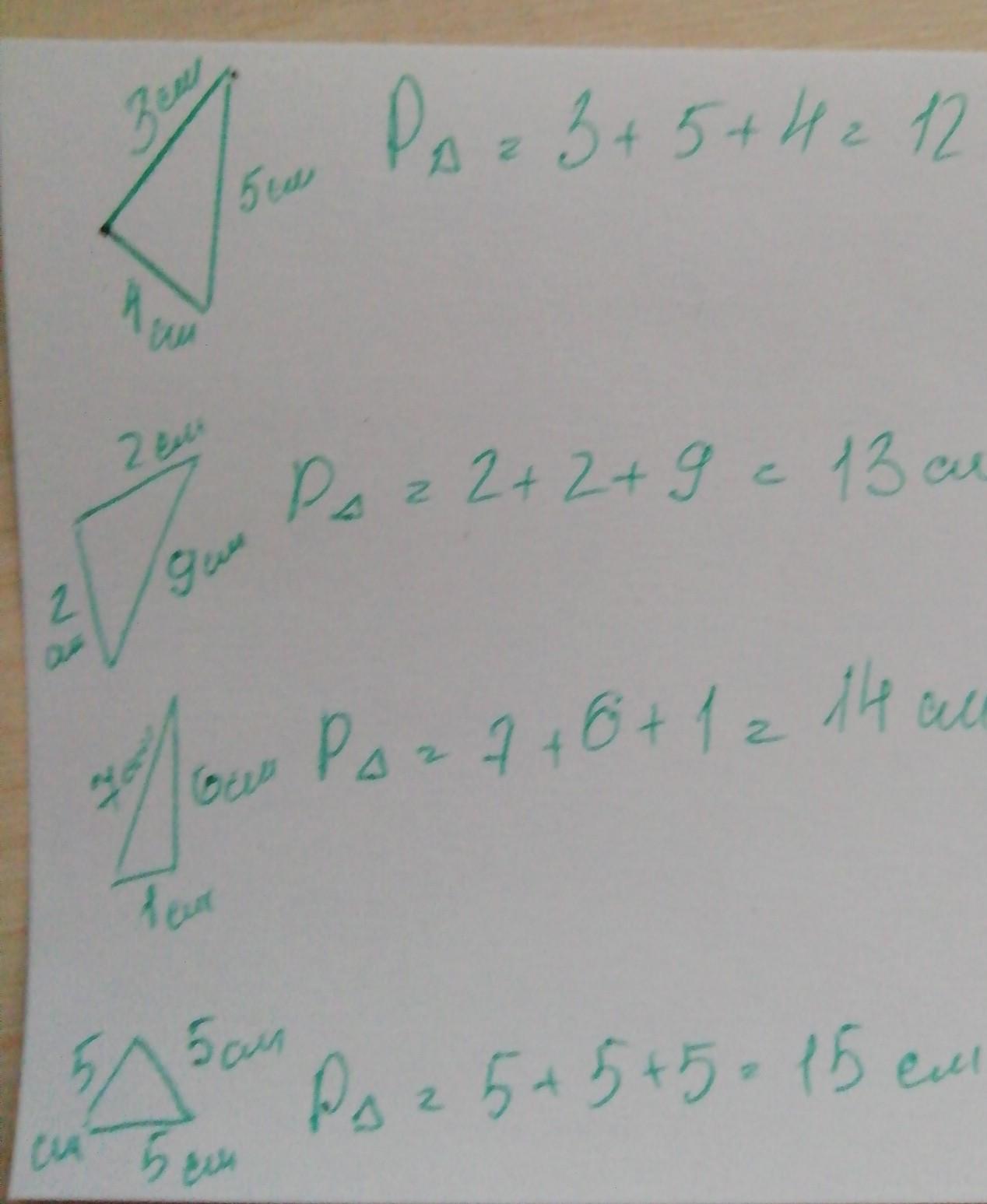 номер 332 Начертите 4 Треугольника с произвольной длиной сторон Вычислите периметр каждого Треугольника