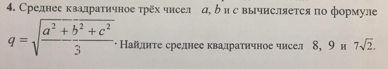 a=8\; ,\; \; b=9\; ,\; \; c=7\sqrt2\\\\a^2+b^2+c^2=64+81+49\cdot 2=243\\\\q=\sqrt{\frac{a^2+b^2+c^2}{3}}=\frac{\sqrt{243}}{3}=\frac{\sqrt{81\cdot 3}}{3}=\frac{9\sqrt3}{3}=3\sqrt3