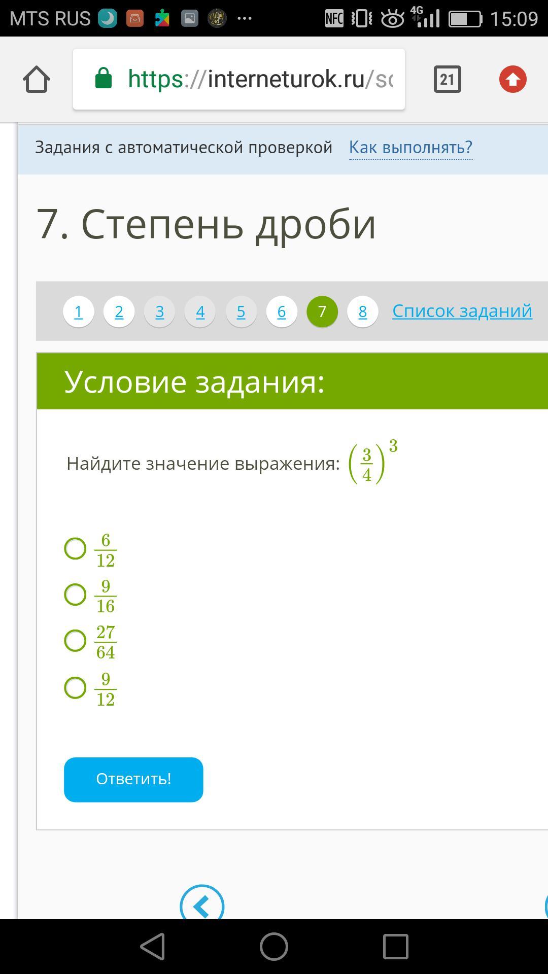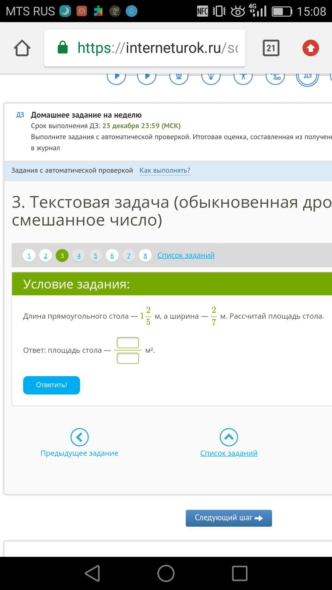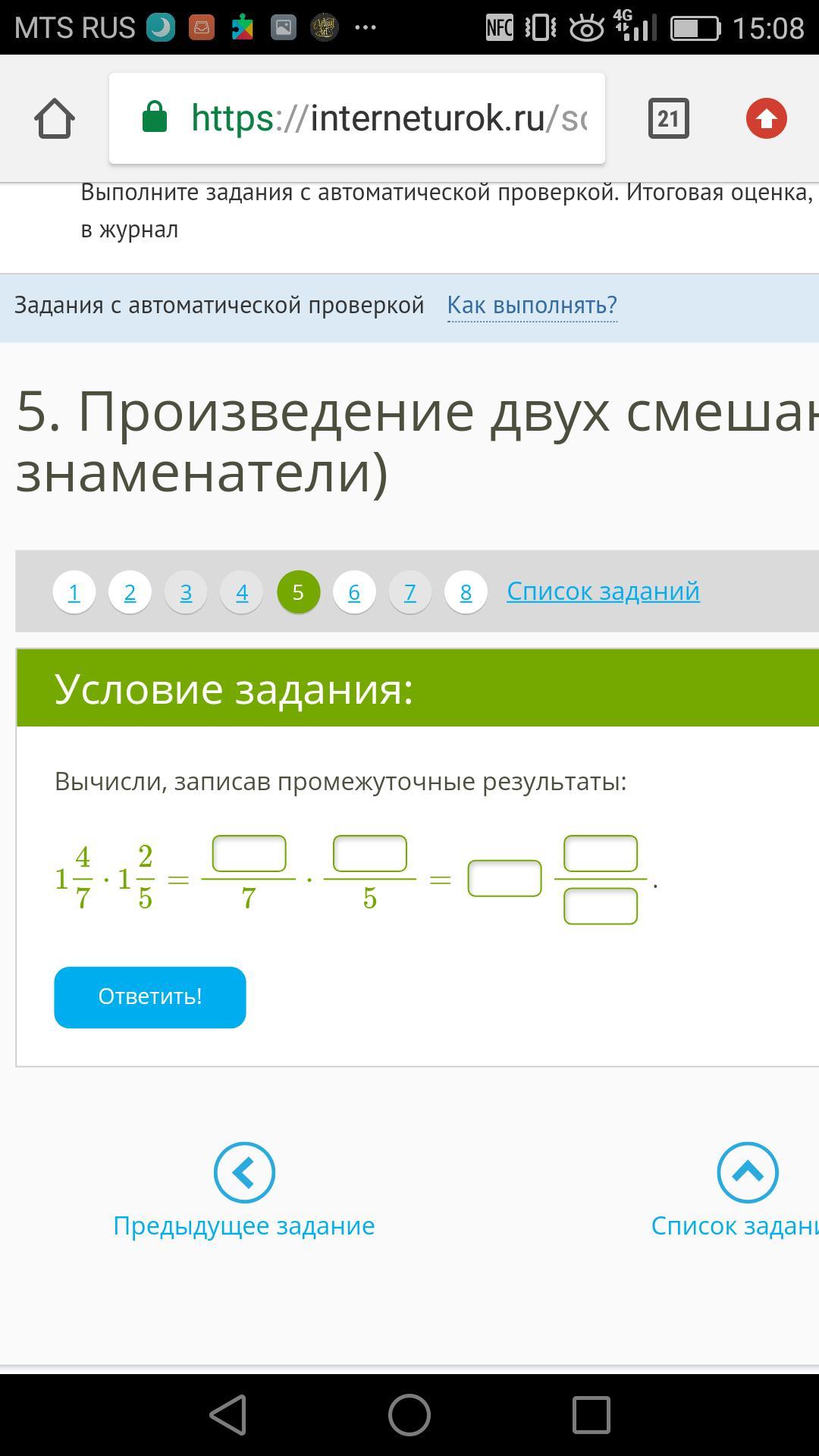 4) 5 целых, 4/5 км; 3) 2/5 метра квадратных; 5) =11/7 •7/5= 2 целых 1/5; 7) 27/64
