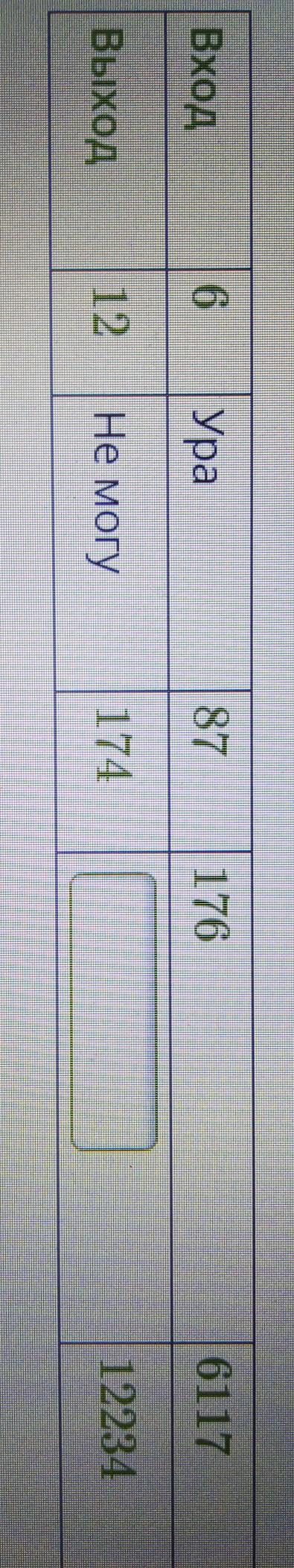 Имеются протоколы испытаний некого «чёрного ящика». При испытаниях протоколы описывали входы и соответствующие им выходы системы. Определи правило преобразования информации и заполни пустую строчку.