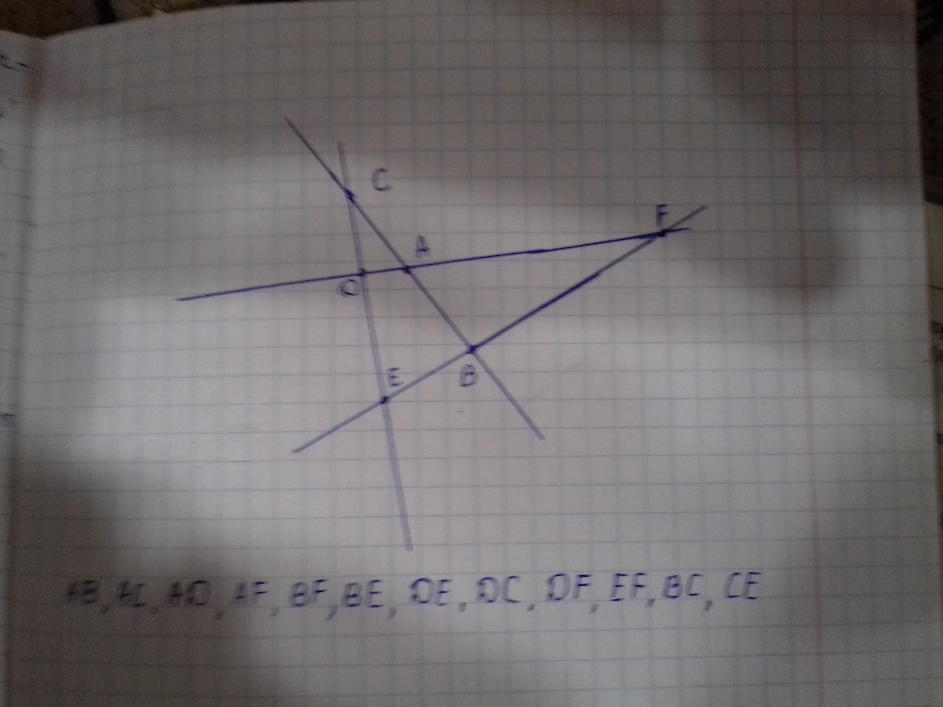 Ответ:AB AC AD AF BF BE DE DC DF EF BC CE