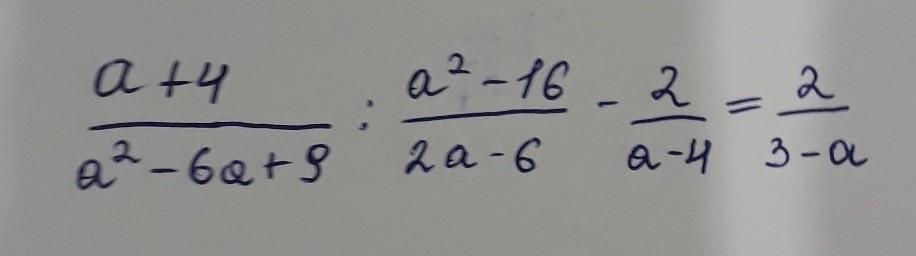 (а+4)/(а²-6а+9) : (а²-16)/(2а-6) - 2/(а-4) =