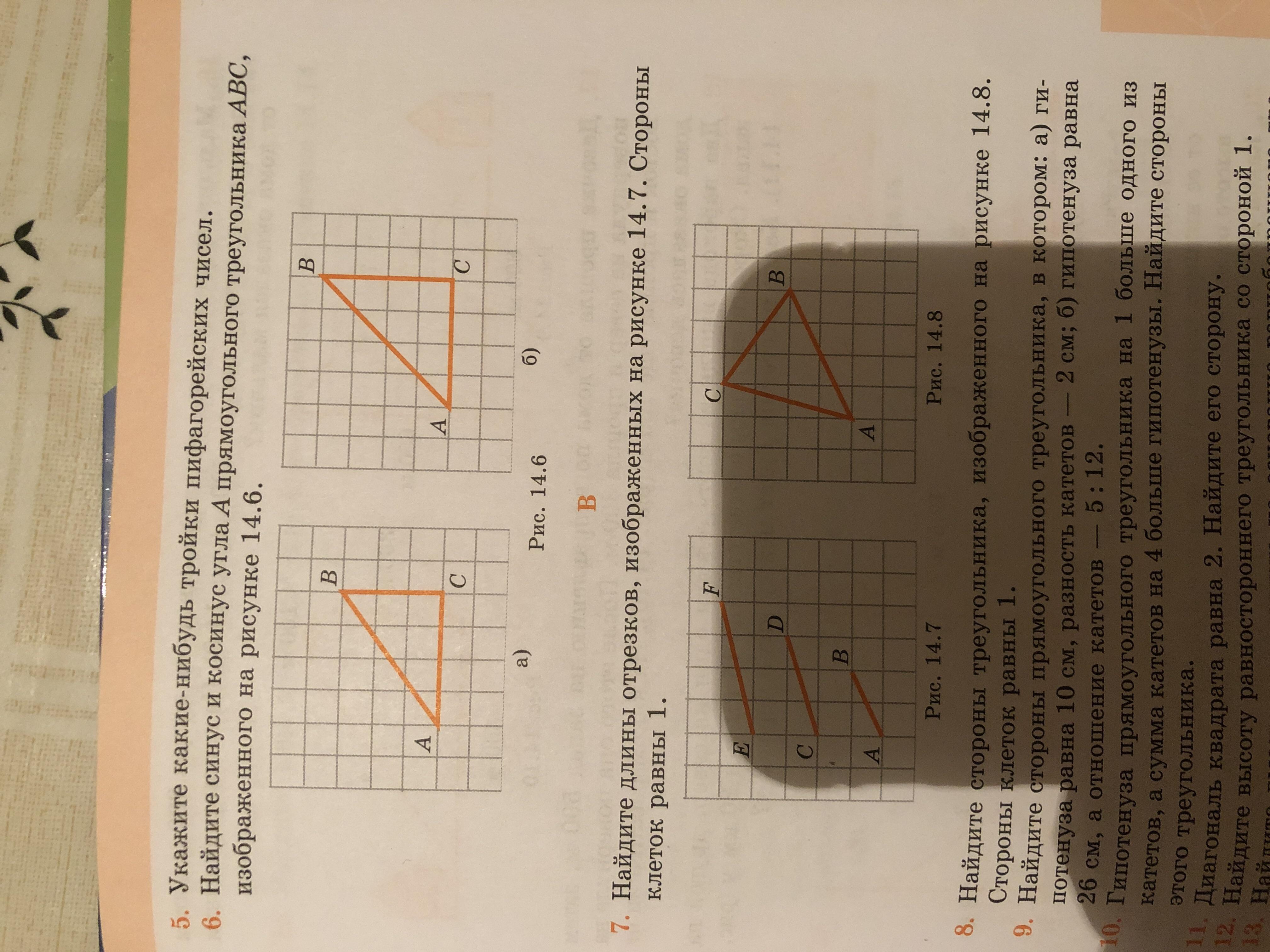 7 задача Найдите длины отрезков ,изображённых на рисунке 14.7 стороны клеток равны 1