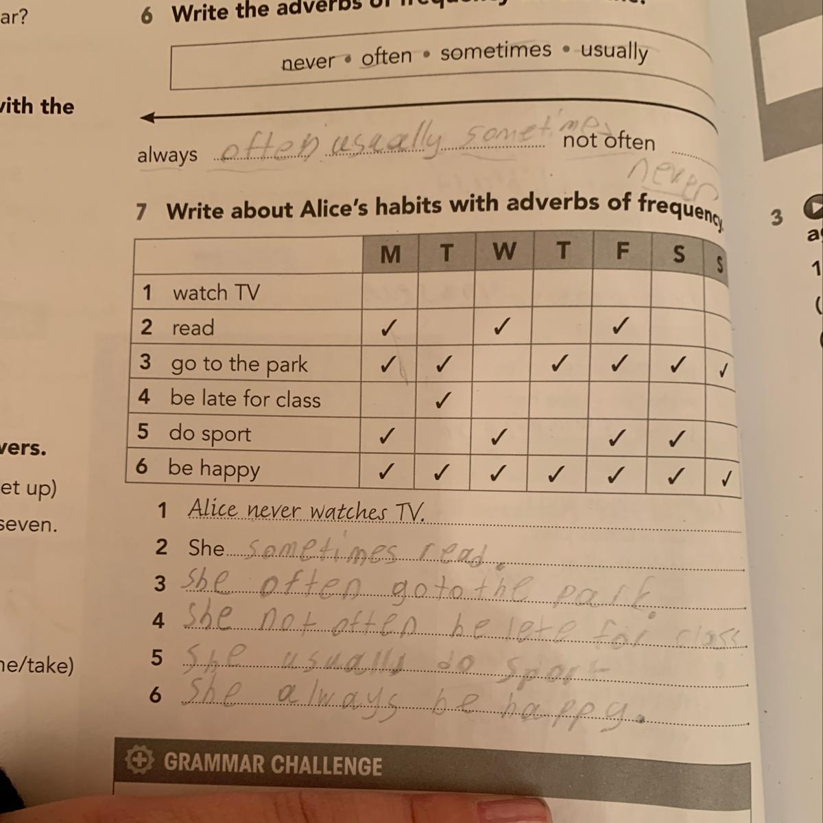 Ответ: 6. usually - often - sometimes - never