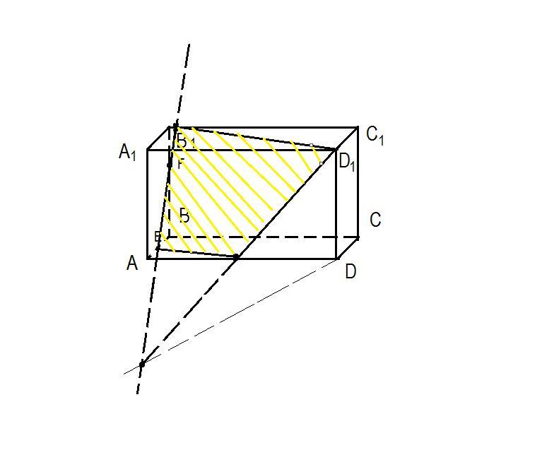 Построить сечение парраллепипеда ABCDA1B1C1D1 плоскостью проходящей через вершину D1 и точке E и F, принадлежащей ребрам AB и BB1