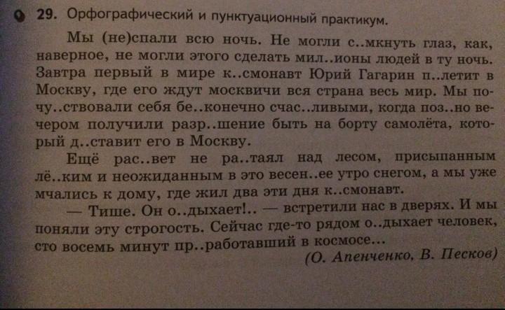 Ответ: Мы не спали всю ночь. Не могли сомкнуть глаз , как , наверное , не могли этого сделать миллионы людей в ту ночь. Завтра первый в мире космонавт Юрий Гагарин полетит в Москву , где его ждут москвичи , вся страна , весь мир. Мы почувствовали себя бесконечно счастливыми , когда поздно вечером получили разрешение быть на боту самолета , который доставит его в Москву.
