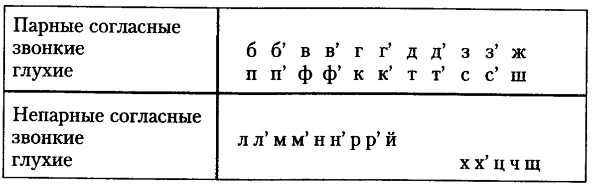 первая строчка звонкие вторая глухие( где написано парные согласные ) ну а где не парные тоже первая строчка звонкие вторая глухие