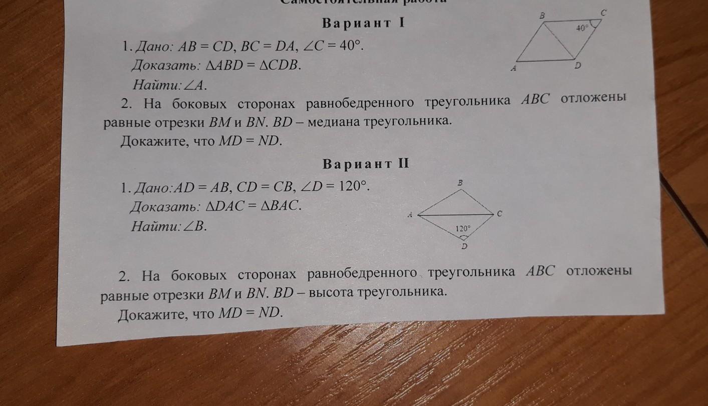 АВ=СD, DA=ВС, сторона ВD общая, соответственно треугольники равны, следовательно треугольники равны угол А равен углу С