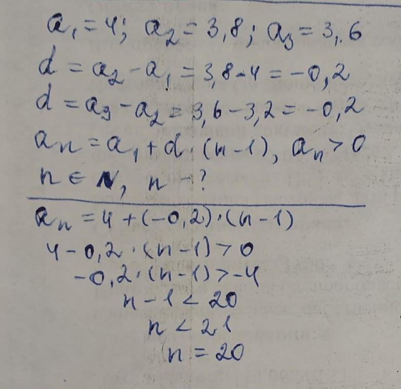 дана арифметическая прогрессия 4 ;3,8 ;3,6 сколько в этой прогрессии положительных членов