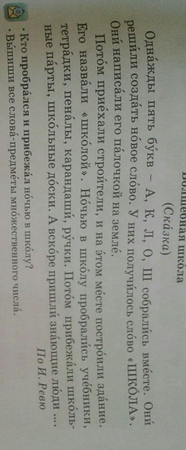 1.Ночью в школу пробрались учебники, тетрадки пеналы, карандаши, ручки. Потом прибежали школьные парты, школьные доски.