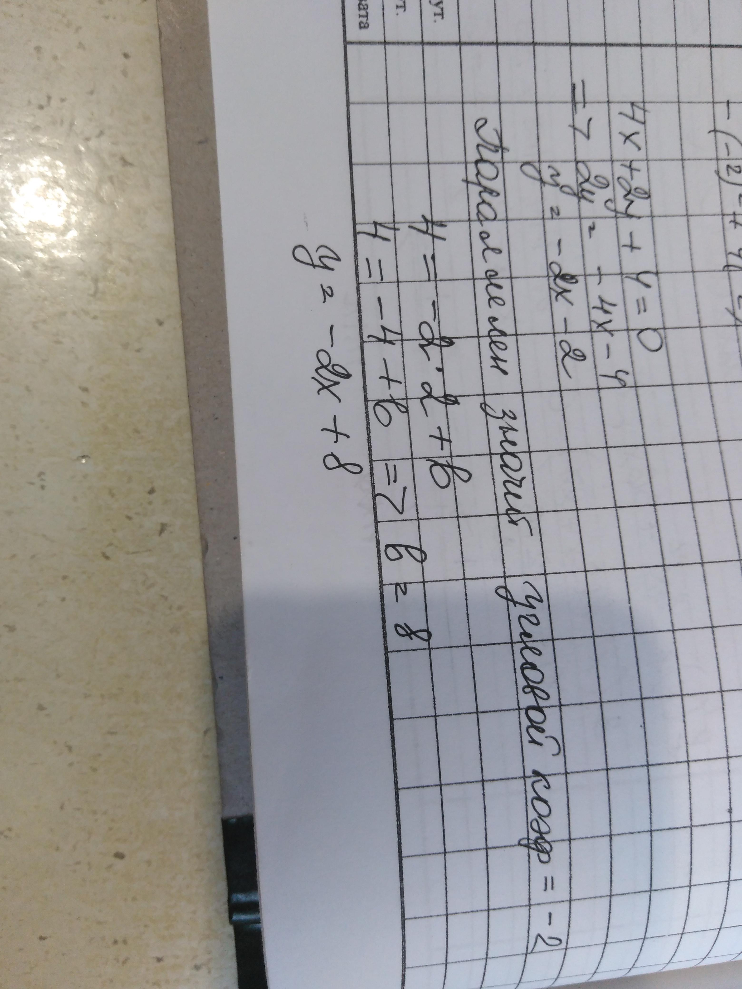 Определи формулу линейной функции, график которой параллелен графику линейной функции 4x+2y+4=0 и проходит через точку M(2;4).