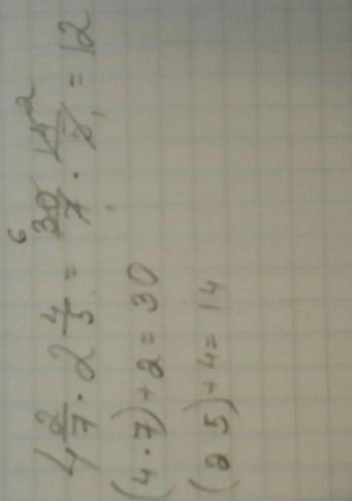 4 2/7×2 4/5= 30/7×14/5=420/35=60/5=12