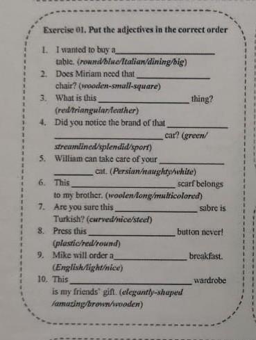 Порядок прилагательных: