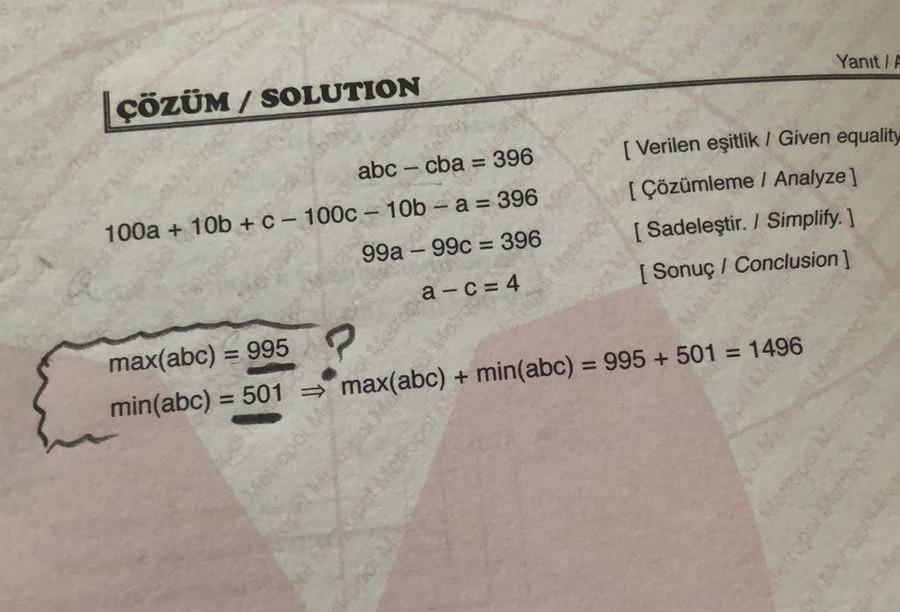 Максимальное abc может быть получено так: в качестве a и b берем максимально возможные цифры, то есть a=9, b=9, тогда c=a-4=9-4=5.