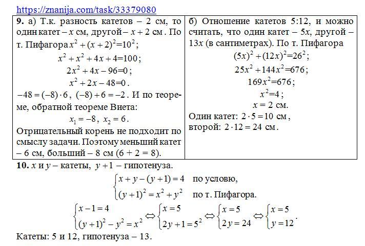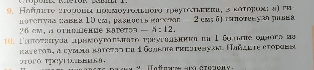 9. а) гипотенуза 10 см (по условию), катеты 6 см и 8 см.