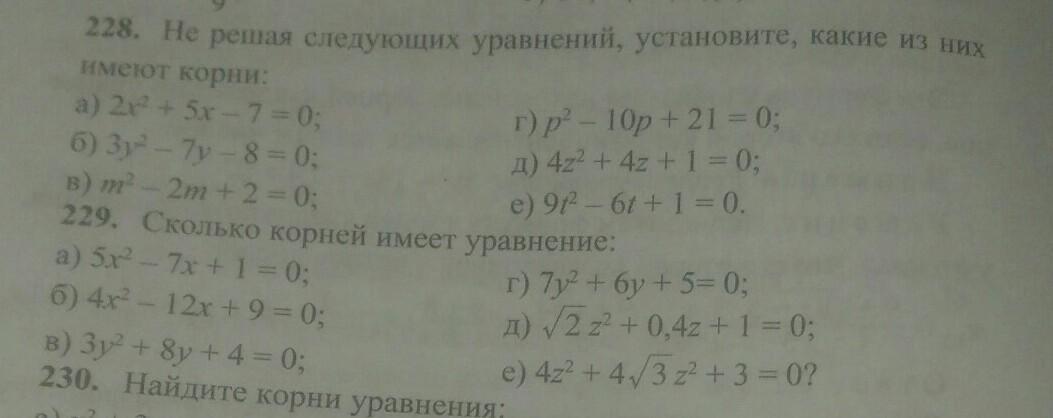 №228 1) X=1 X=-3,5 2) - 3) нет корней 4)x=7 x=3