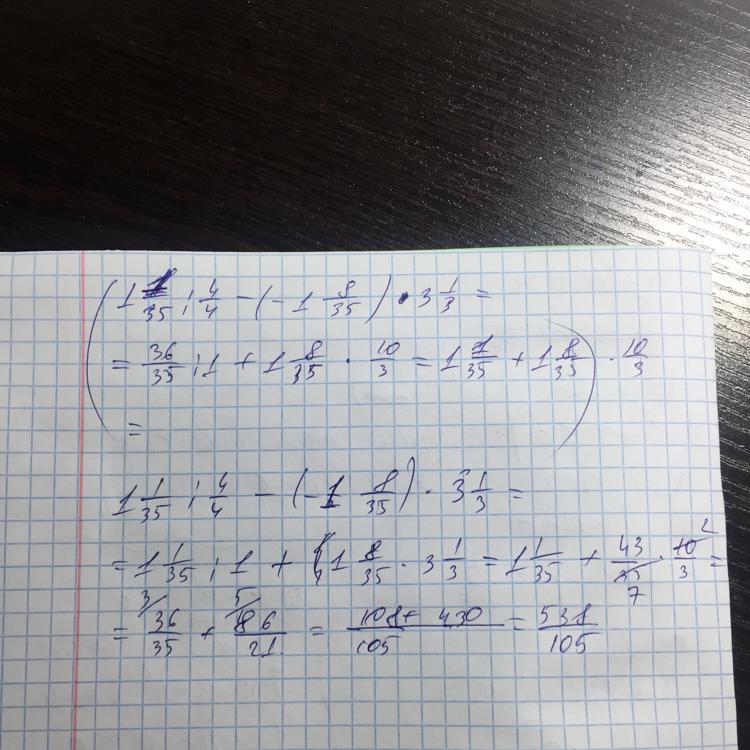 Ответ: 1) 1 1/35:1-1 8/35=-7/35=-1/5