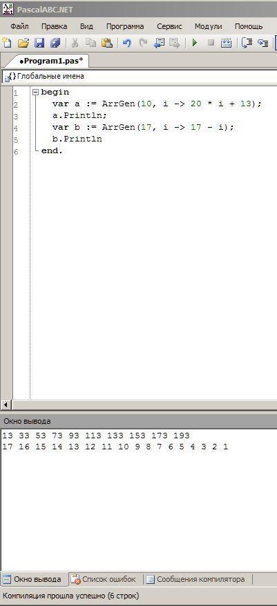 var a := ArrGen(10, i -> 20 * i + 13);