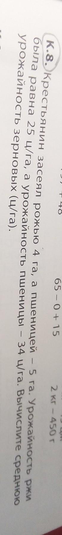 Пошаговое объяснение:1) СК. ЦЕНТНЕРОВ СОБРАЛИ РЖИ С 4 ГА 25*4=100 Ц. 2)СК.СОБРАЛИ Ц. ПШЕНИЦЫ С 5 ГА 34*5=170 Ц.3)ВСЕГО СК.СОБРАЛИ ЗЕРНОВЫХ 100+170=270 Ц. 3) СРЕДНЯЯ УРОЖАЙ НОСТЬ ЗЕРНОВЫХ 270/(4+5)=270/9=30 (ц/га).
