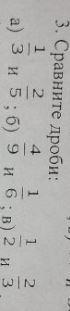 А1/3больше 2/5. Б4/9больше1/6. В1/2меньше2/3
