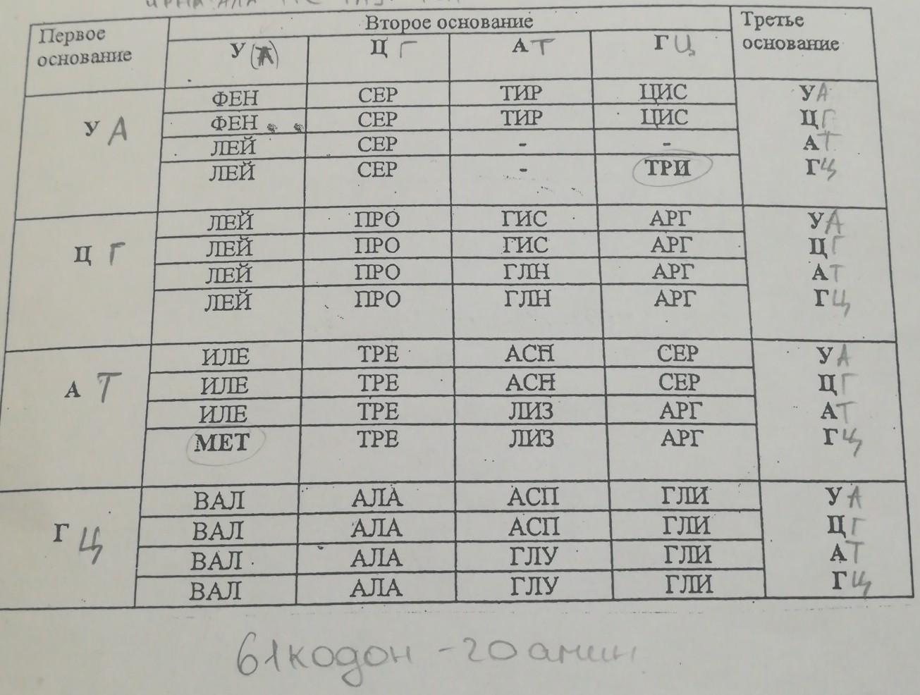 По таблице генетического кода находим аминокислоты