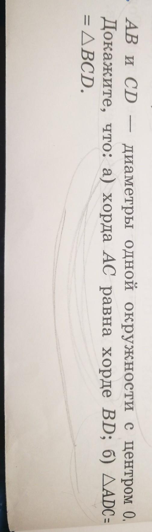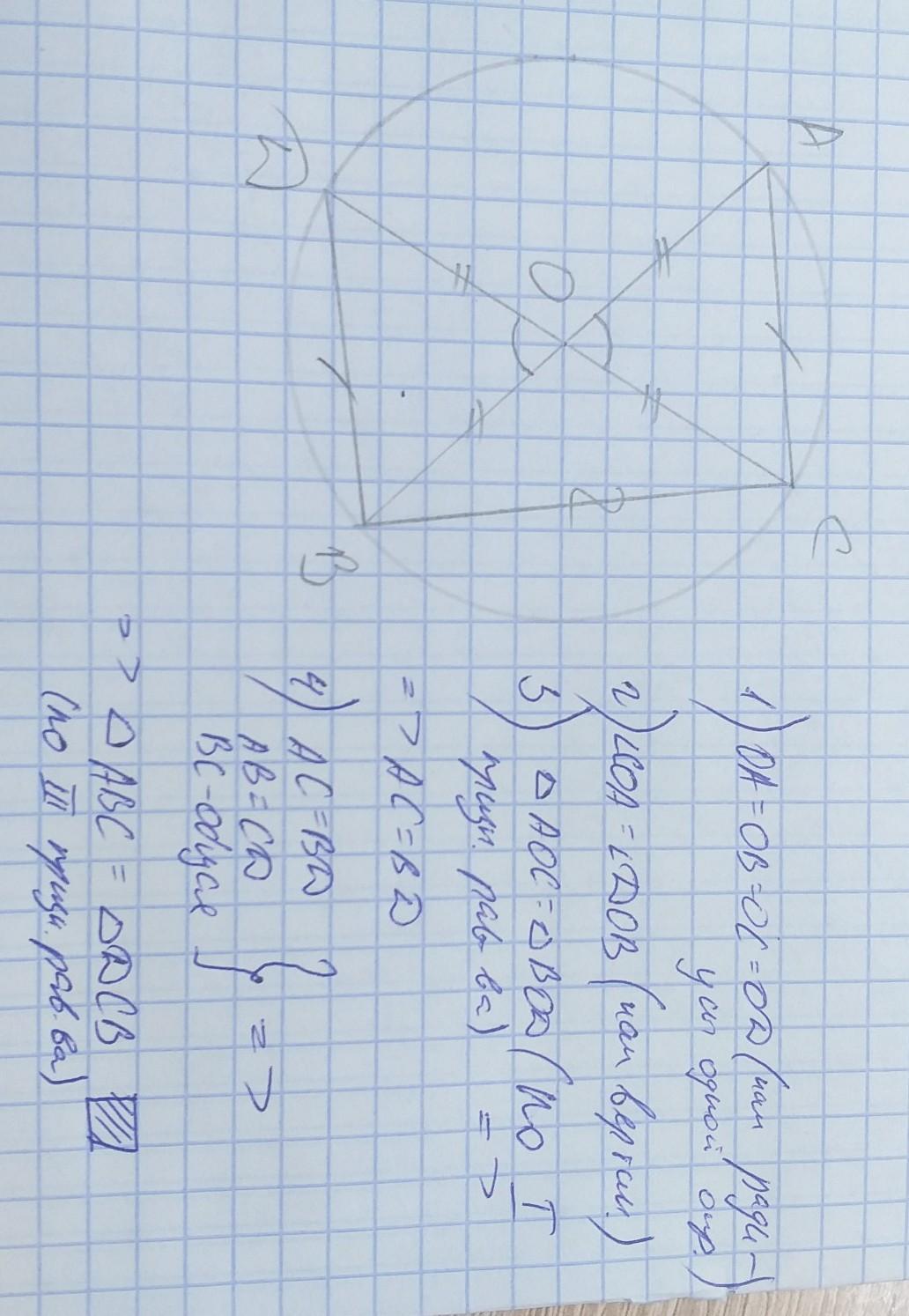 AB и CD диаметры одной окружности с центром О Докажите что треугольник ABC равен треугольнику BCD